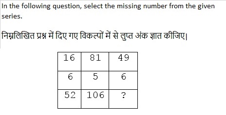 QID : 212 - एक अनुक्रम दिया गया है, जिसमें से एक पद लुप्त है। दिए गए विकल्पों में से वह सही विकल्प चुनिए जो अनुक्रम को पूरा करे।