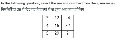 QID : 109 - एक अनुक्रम दिया गया है, जिसमें से एक पद लुप्त है। दिए गए विकल्पों में से वह सही विकल्प चुनिए, जो अनुक्रम को पूरा करे।