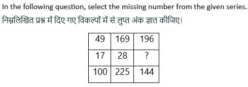 QID : 212 - एक अनुक्रम दिया गया है, जिसमें से एक पद लुप्त है। दिए गए विकल्पों में से वह सही विकल्प चुनिए, जो अनुक्रम को पूरा करे।