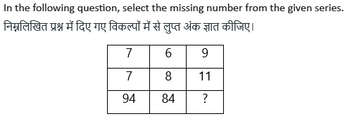 QID : 111 - एक अनुक्रम दिया गया है, जिसमें से एक पद लुप्त है। दिए गए विकल्पों में से वह सही विकल्प चुनिए, जो अनुक्रम को पूरा करे।